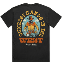 Channel the fearless spirit of the Wild West with our "Quickest Hands" Tee from the Vintage Vibe Series. This coal-colored, heavyweight shirt embodies the essence of the rugged frontier, tailored for the swift and strategic pickleball player.